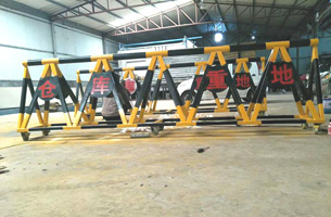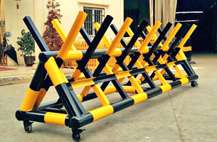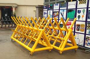 采用q235圓管、方管、扁鋼等焊接而成,表面經(jīng)人工打磨后噴漆或者噴塑,貼反光膜,底面帶剎車(chē)萬(wàn)向輪,背面帶刺,作為一種常用的攔截工具。